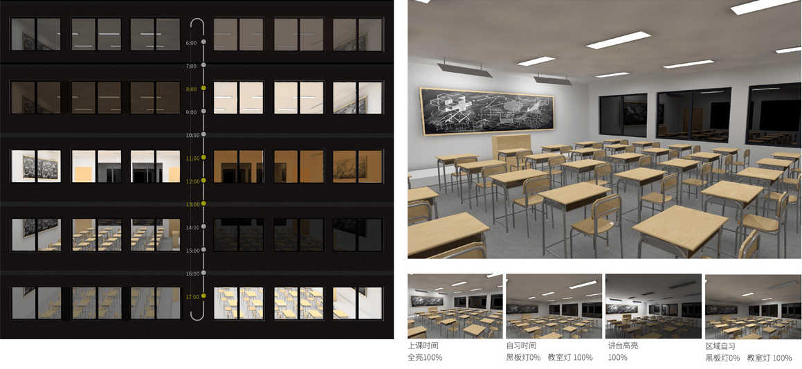 1.根据时间段或外部环境来设定灯光,保证工作视觉照度要求;